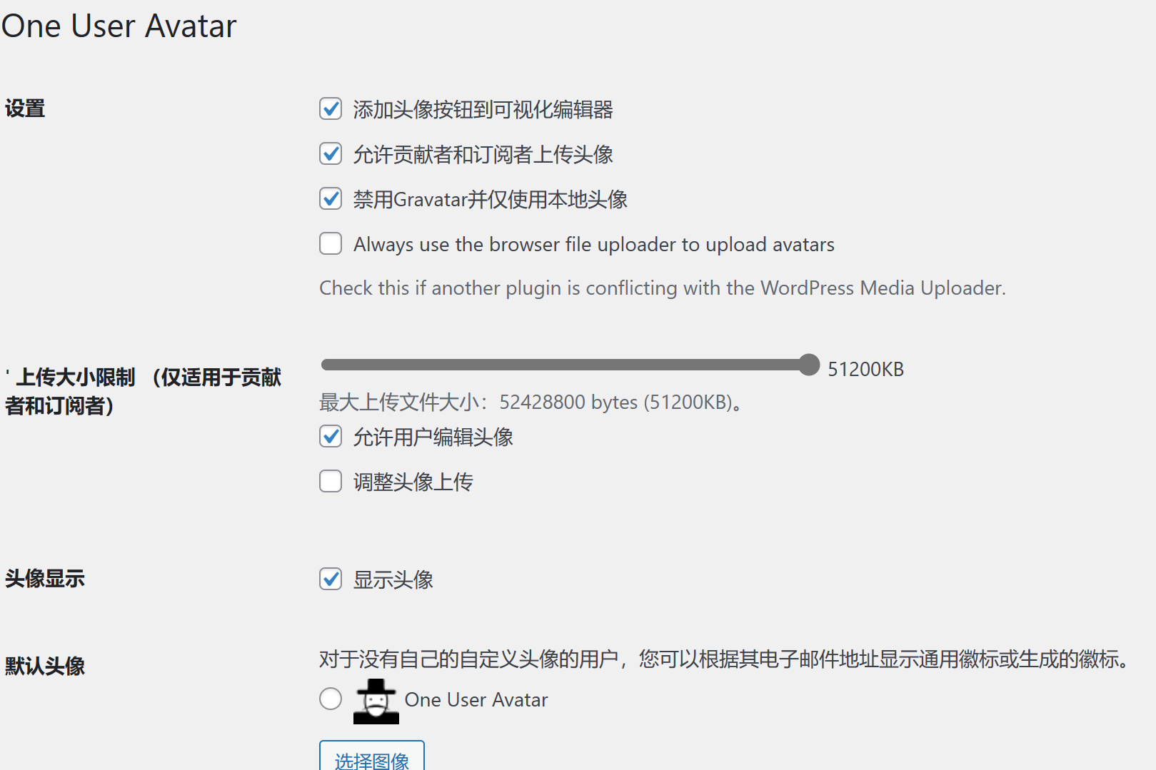 可解决部分主题不能正常显示Avtar头像的问题,并允许设置默认头像,用户上传本地图片作为头像。