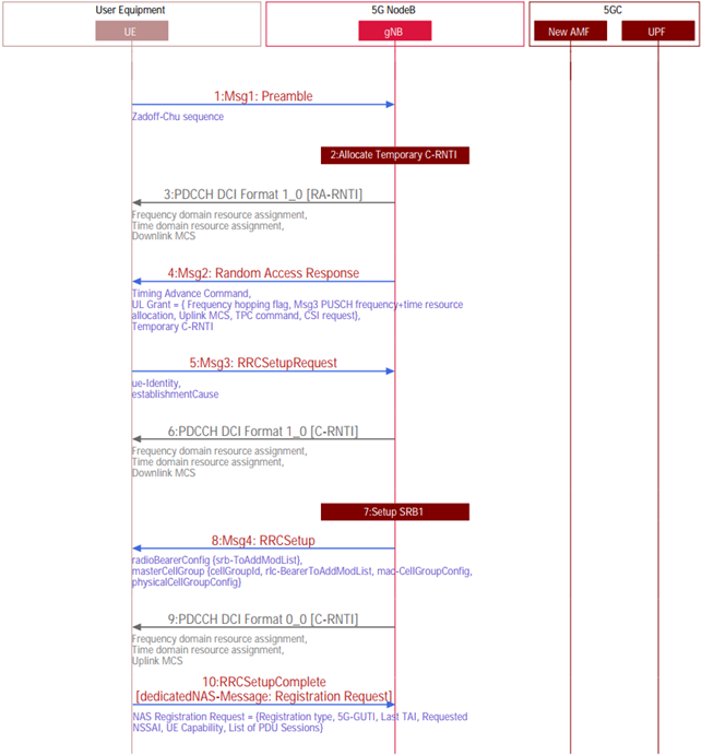 2. gNB将给UE分配一个临时RNTI并在RAR中带给UE。