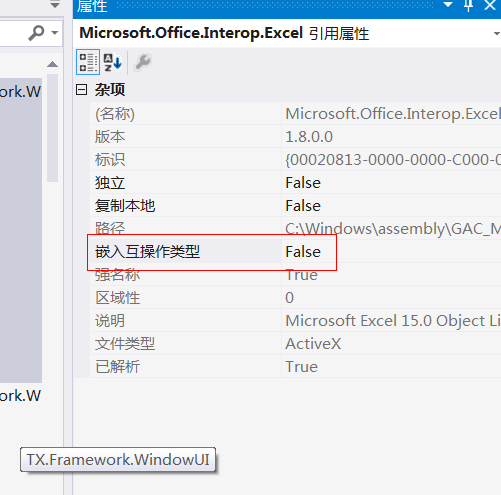 错误 1 无法嵌入互操作类型“Microsoft.Office.Interop.Excel.ApplicationClass”。请改用适用的接口。 D:\Projects\C#WorkSpace\TTX.Framework.WindowUI\TX.Framework.WindowUI\Excel\ExcelManager.cs 27 17 TX.Framework.WindowUI