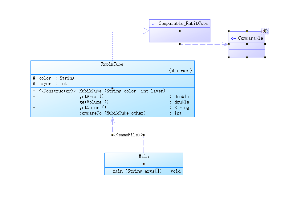 Comparable<RubikCube>接口被实现在RubikCube抽象类中,它定义了比较魔方对象的方法,使得魔方对象可以进行排序。 -