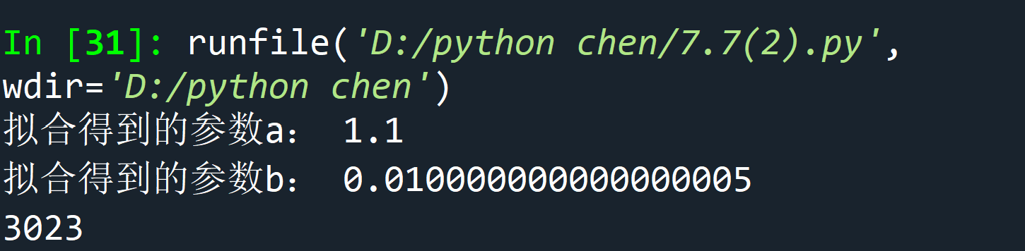 popt, pcov = leastsq(error_function, initial_guess, args=(x_observed, y_observed))