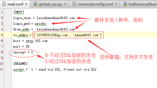 8、可根据配置在测试完成后,自动发送测试报告邮件,邮件发送支持SSL加密发送和非SSL加密发送,同时支持往多个邮箱发送邮件