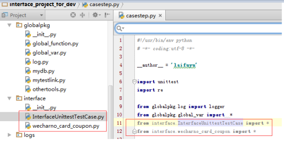 需要注意的是,这里添加的模块及类,需要在casestep.py中导入