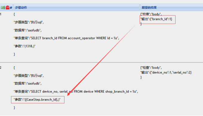 A)“步骤动作”中的非全局变量来源于某个sql查询结果,则按如下格式填写