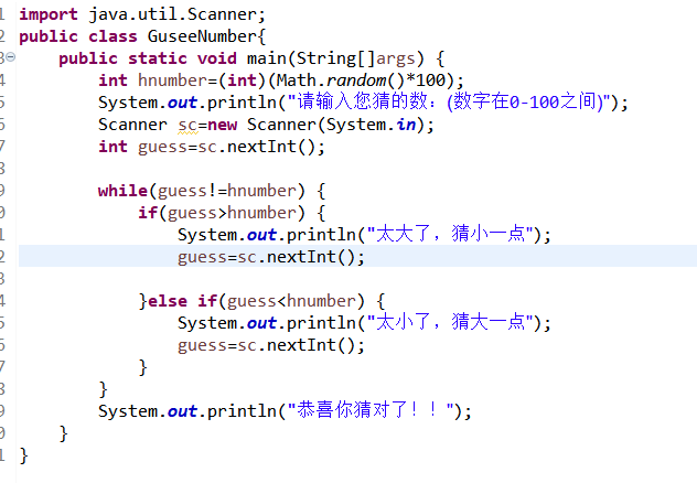 2、随机输入一个数系统提示“太小了,猜大一点”或“太大了,猜小一点”