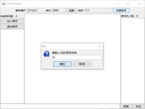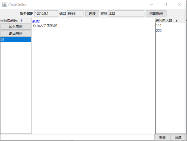 左侧显示房间数,右侧显示房间内人数,中间显示聊天内容,发送系统消息