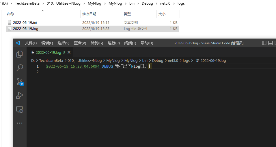 //创建日志记录对象 Logger Logger = NLog.LogManager.GetCurrentClassLogger(); //打出日志 Logger.Debug("我打出了Nlog日志!");