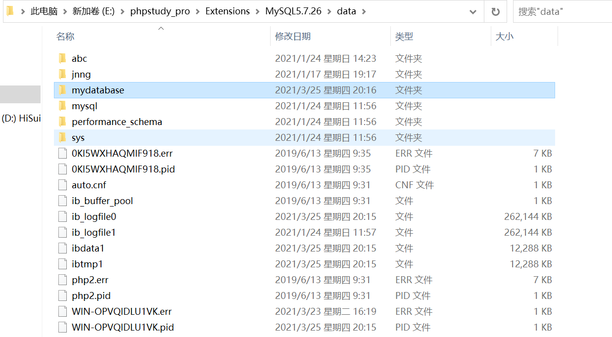 每当用户通过SQL指令创建一个数据库,那么系统就会产生一个对应的存储数据的文件夹(data目录)
