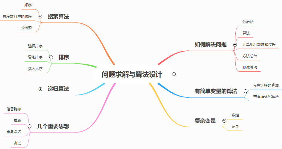 求解过程:分析说明阶段、算法开发阶段、实现阶段、维护阶段。 - 有简单变量的算法:简单变量是那些不能被分开的变量。