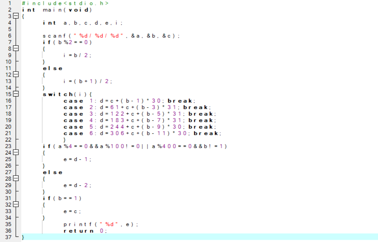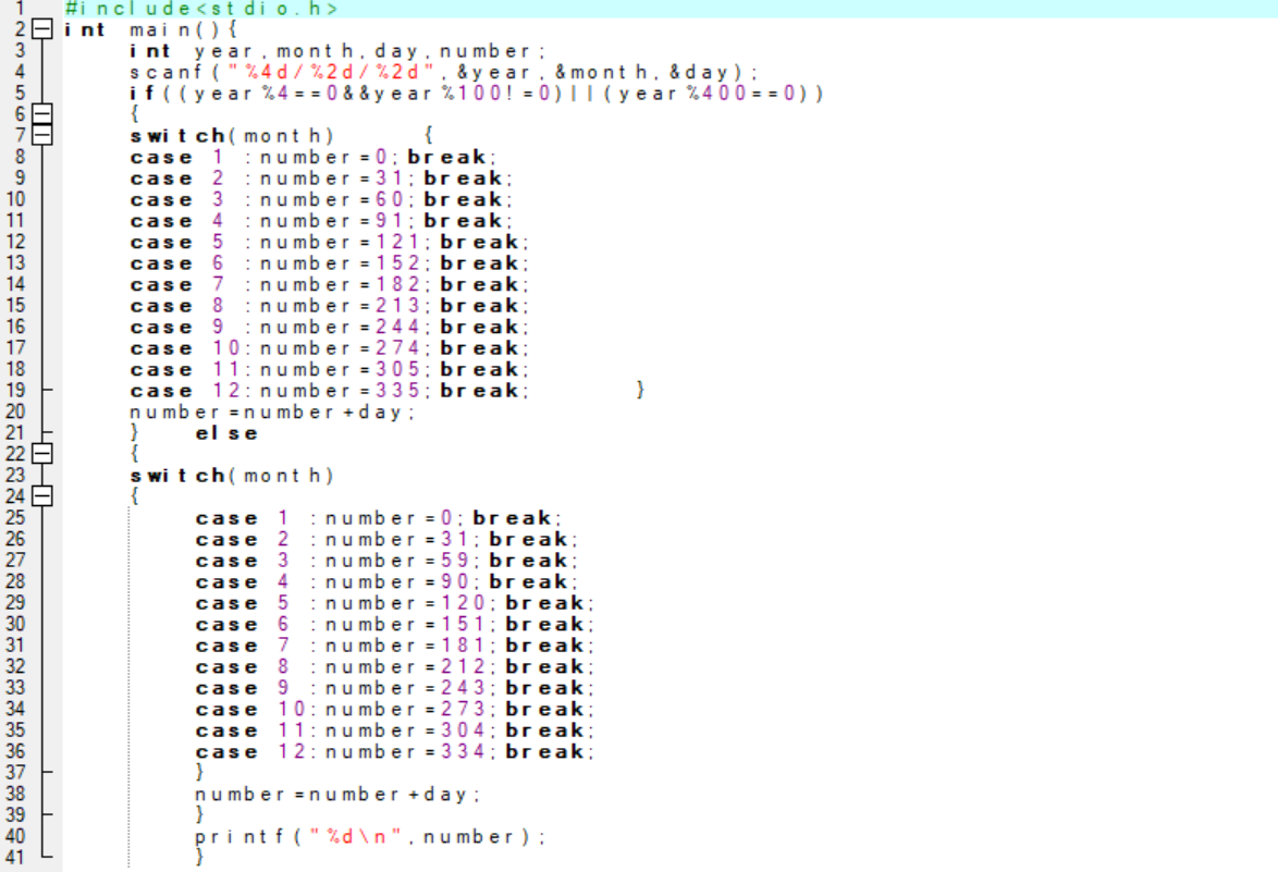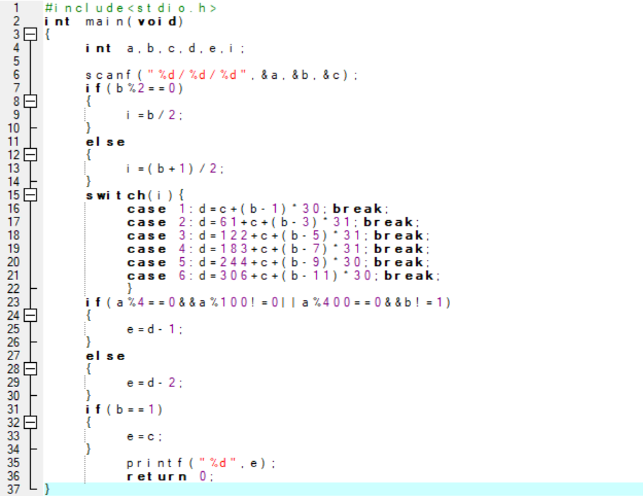 ·1部分正确:未考虑闰年和非闰年的1月天数是一样的;在if语句内添加b!=1,再在后面b=1时e=c。