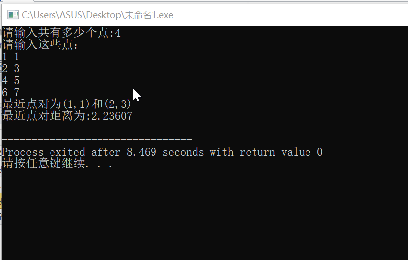 //输出:最近点对的欧几里得距离