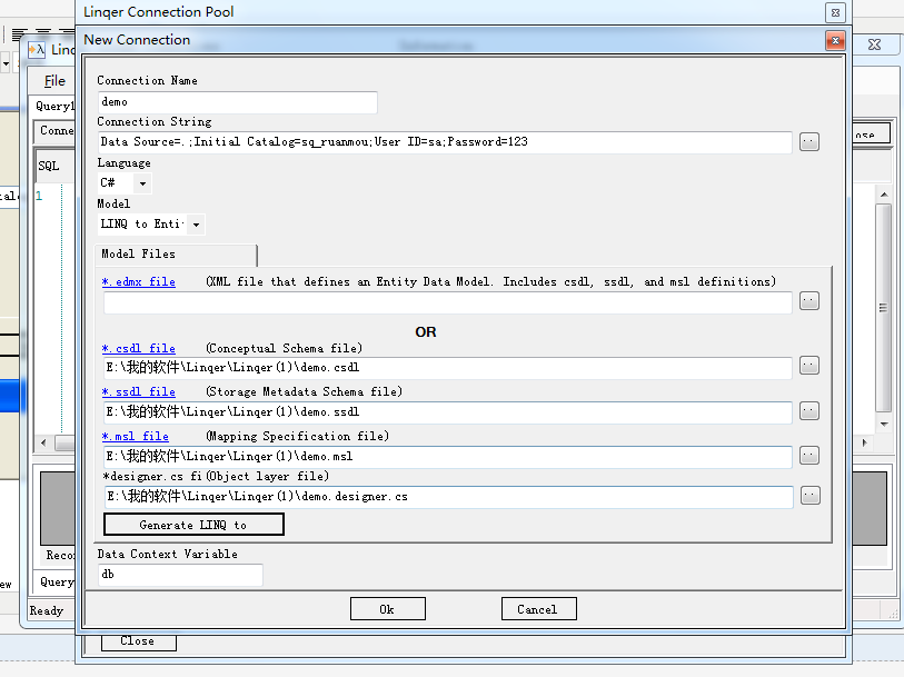 Model框中选择“linq to Entity,