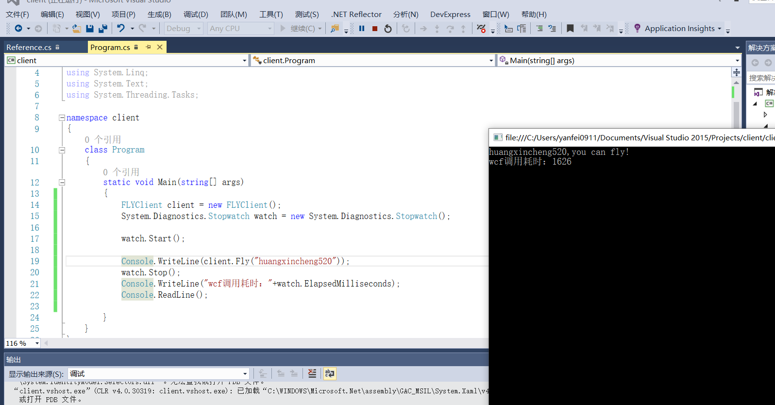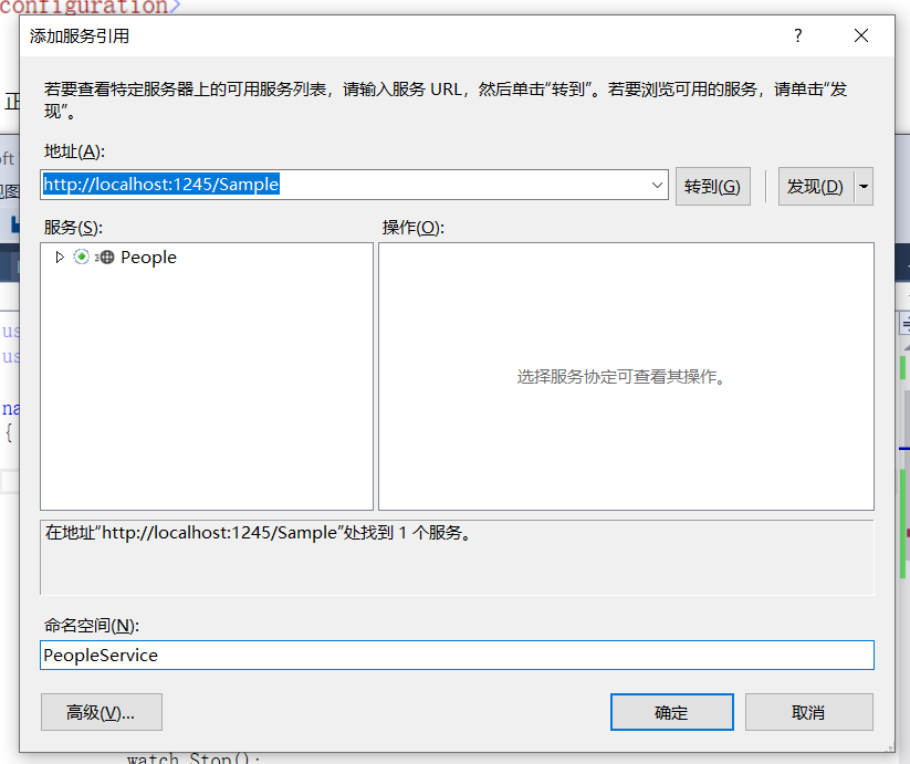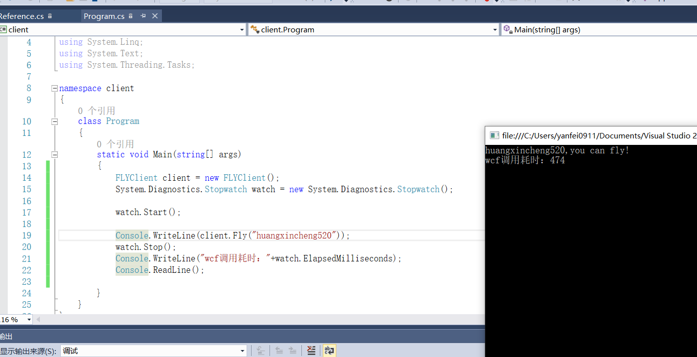 点击“确定”后,引用完成,接下来,我们调用wcf就像调用本地程序一样那么简单 哈哈