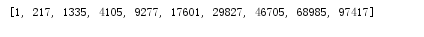 #定义一个函数 def multiply(n): a = list(range(n)) b = list(range(1,5*n,5)) c = [] for i in range(len(a)): c.append(a[i]**2+b[i]**3) #对a的平方,b的立方求和,加在c后面,成为c的元素 return (c) print(multiply(10))