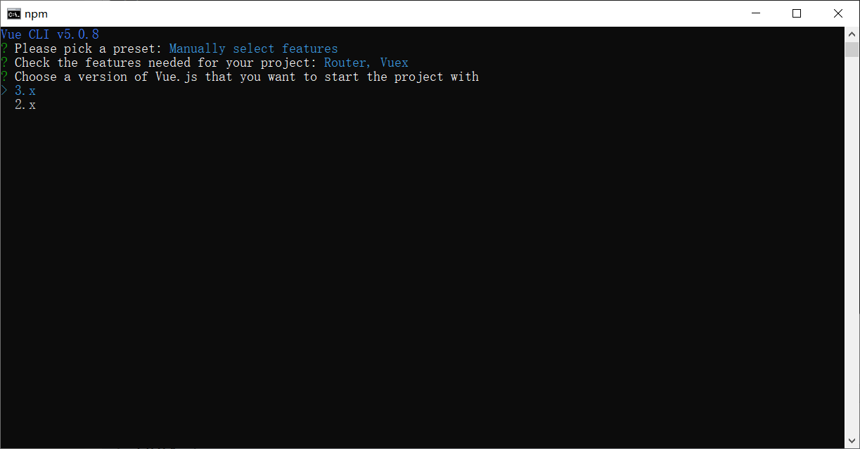 选择3.x -> vue3