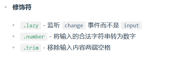 lazy修饰符:当鼠标移出了输入框后,才会触发事情,和change类似