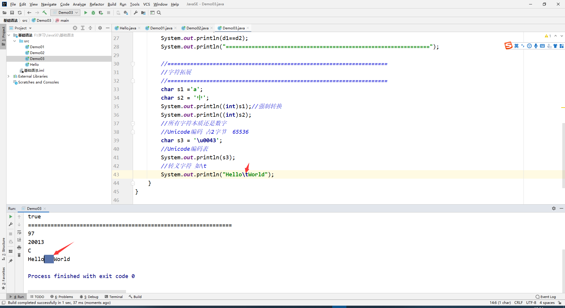 \t 制表符
