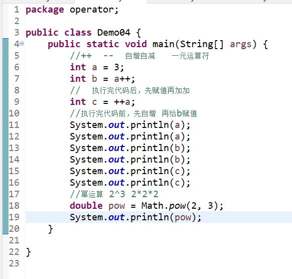 算数运算符:+,-,*,/,%(取余\模运算),++,--