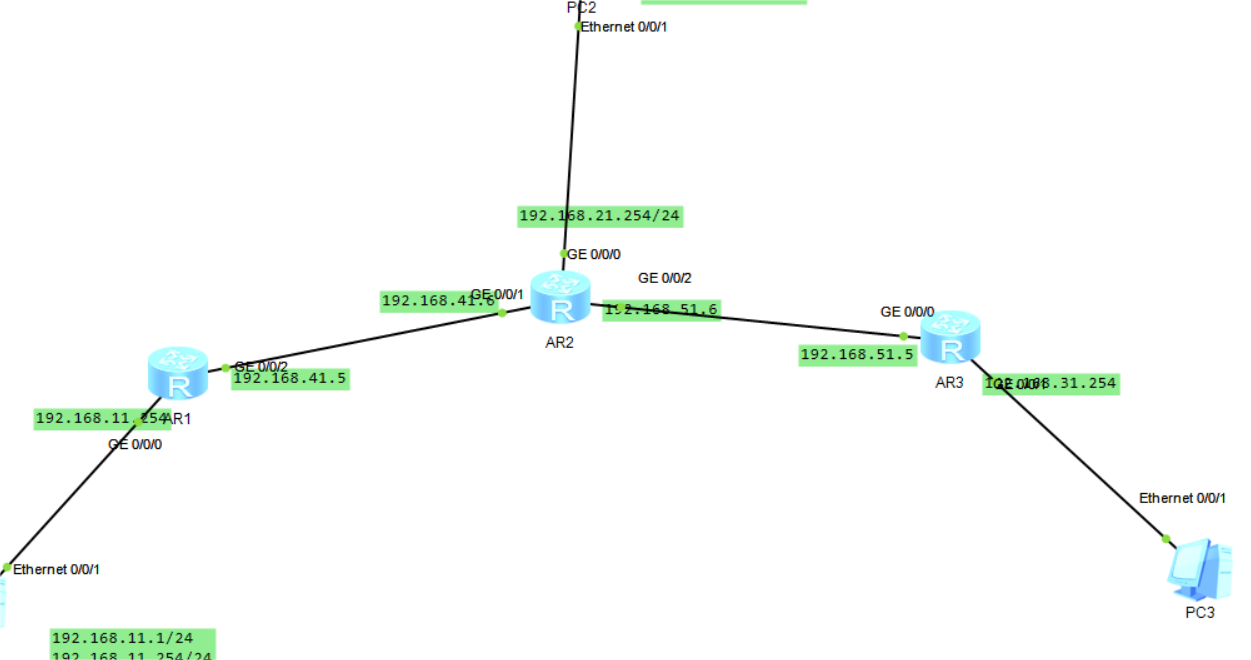 AR1 路由表配置: