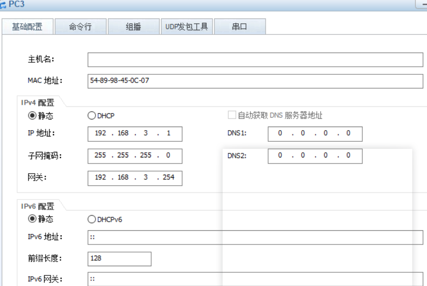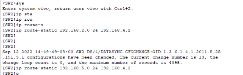[R3]ip route-static 0.0.0.0 0 192.168.4.1 #配置静态路由