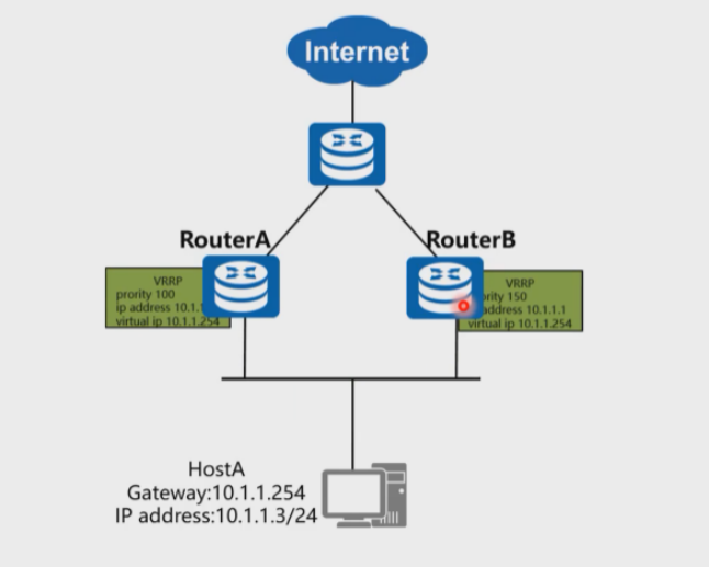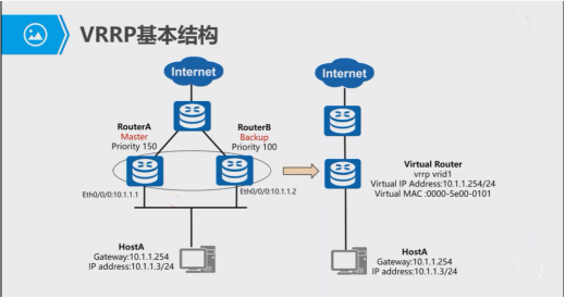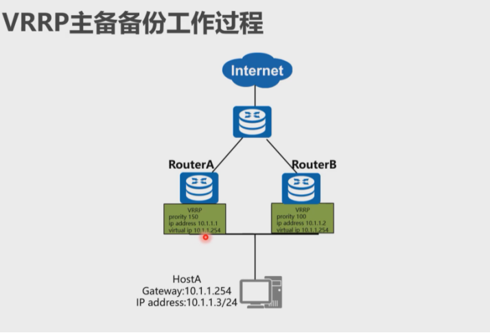 周期时间默认是1s;备份网关,通过比较 VRRP 优先级,优先级小的是备份路由器;