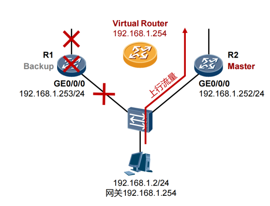 此时只有master路由器会回应针对虚拟网关IP地址的ARP请求,所以最终终端设备发送的数据