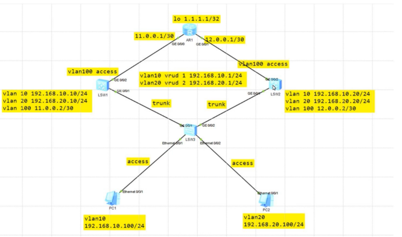 vlan batch 10 20 100 ###划分VLAN 10 20
