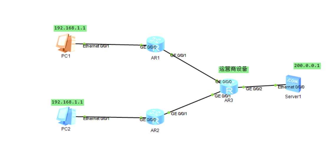 源地址 200.0.0.1 目的地址:192.168.1.1