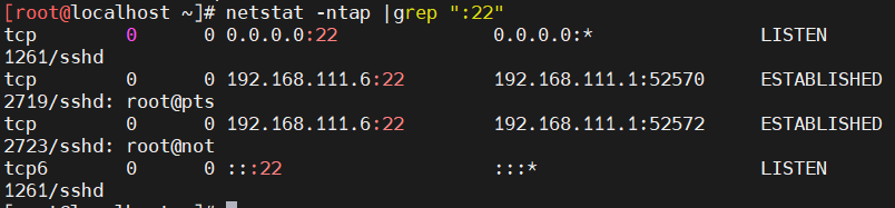 -p:显示与网络连接相关联的进程号、进程名称信息(该选项需要 root 权限)