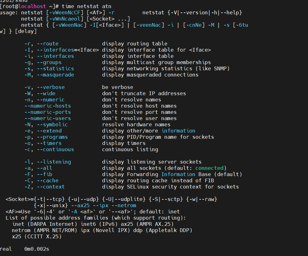 -a:显示主机中所有活动的网络连接信息(包括监听、非监听状态的服务端口)