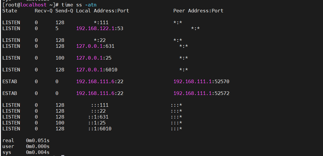 -l:显示处于监听(Listening)状态的网络连接及端口信息