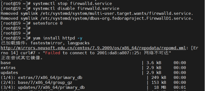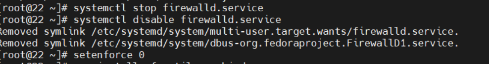 [root@localhost ~]# systemctl stop firewalld.service [root@localhost ~]# setenforce 0