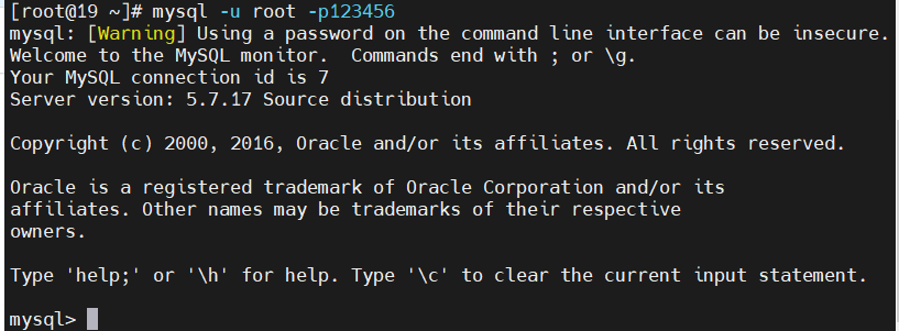 mysqladmin -u root -p password "123" #给数据库设置密码(后面的回车) mysql -uroot -p "123" #直接登录数据库 mysql -u root -p #登录数据库,输入密码后完成登录