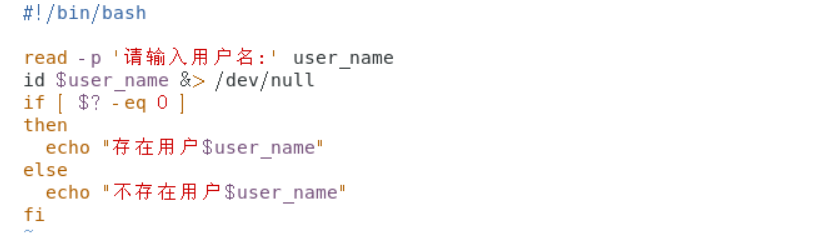 2.编写一脚本,判断输入用户名是否存在,输出结果只能是存在该用户或者不存在该用户,不能有其他数据输出