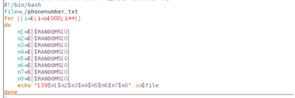7.编写脚本,生成一个phonenumber.txt文件,文件内容为随机产生以139开头的手机号1000个,每个手机号占一行。