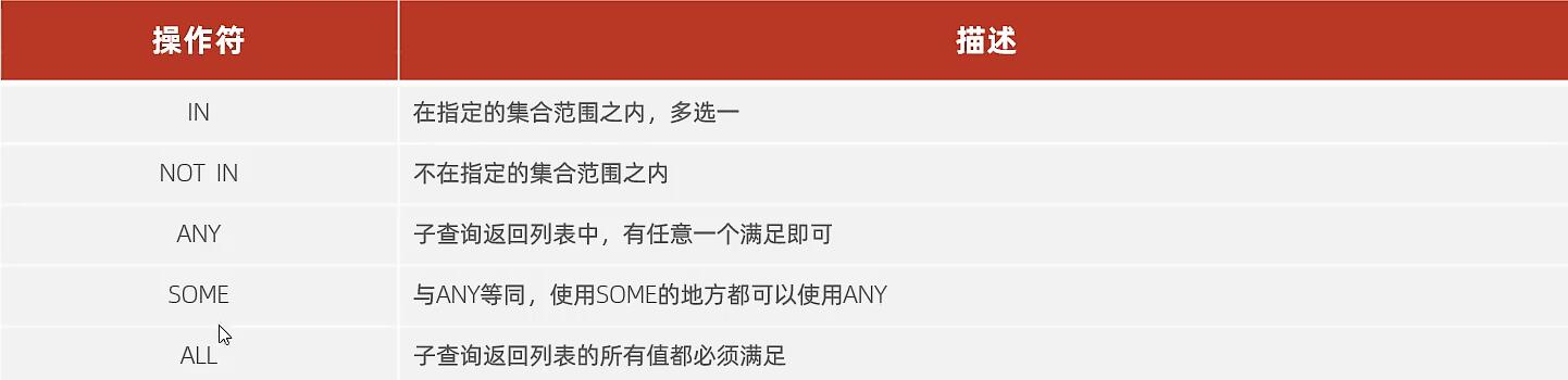 select * from emp where salary>all(select salary from emp where dept_id=(select id from dept where name='研发部'));