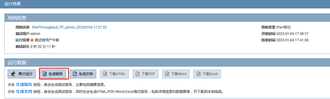 用例停止后,生成报告查看详细数据