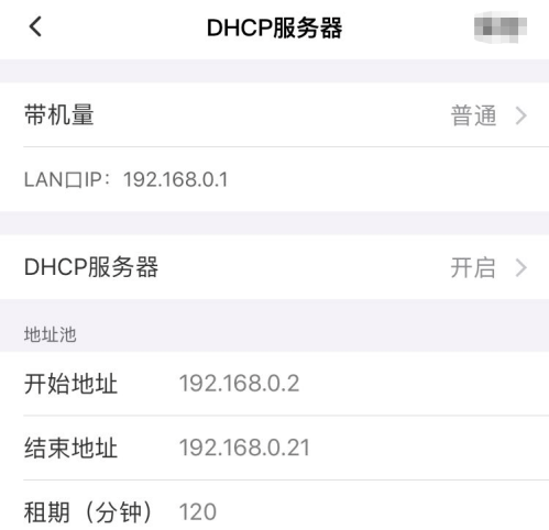 路由器上设置DHCP地址池如下