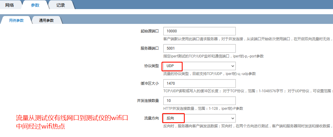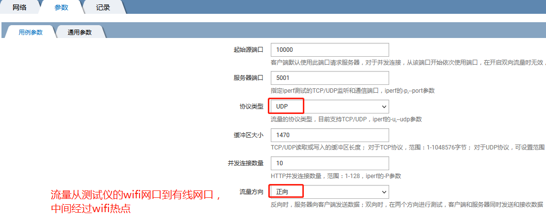 流量方向为测试仪wifi网口—测试仪另一端的有线网口,中间经过wifi热点。