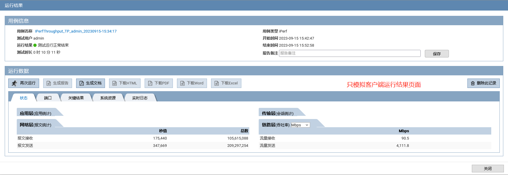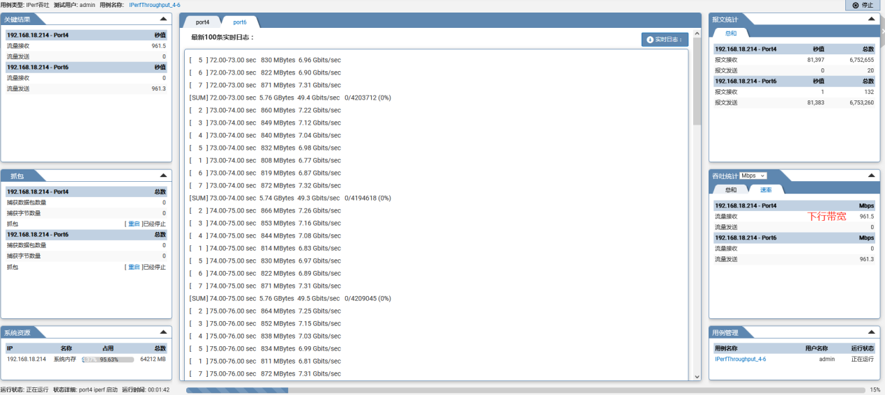 (2)启动用例进行打流,查看运行结果