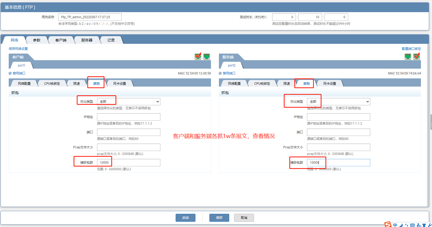(3)抓包设置,本次运行结果需要看主被动模式是否运行成功,及上传或者下载文件是否有效,需要抓包查看。