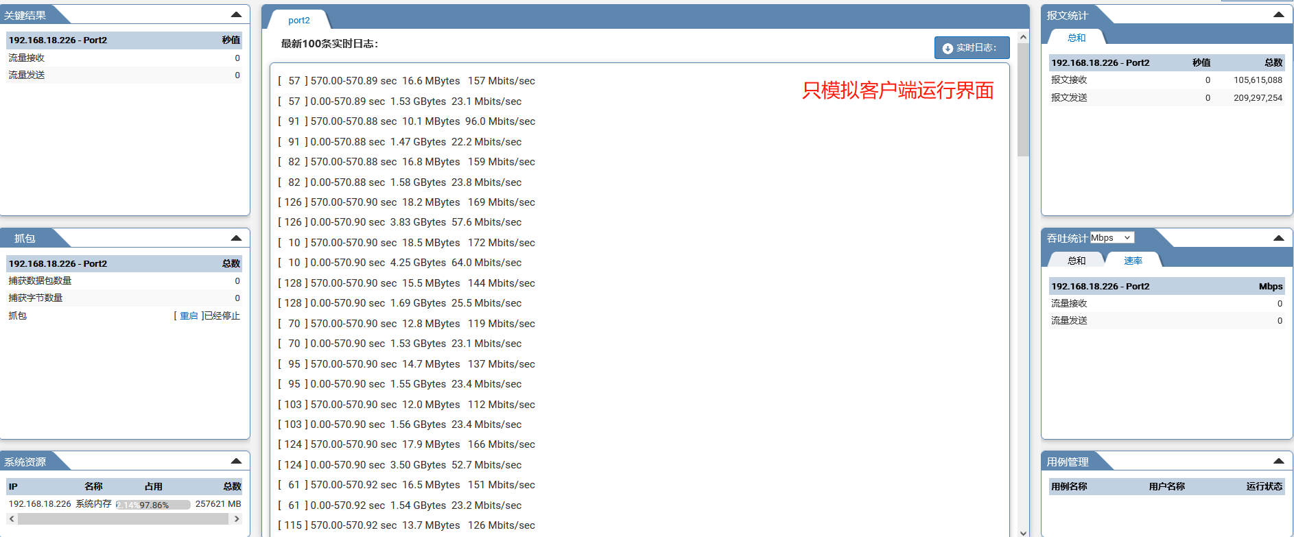 4.2.2测试仪分别模拟客户端和服务端,向受测设备发送流量
