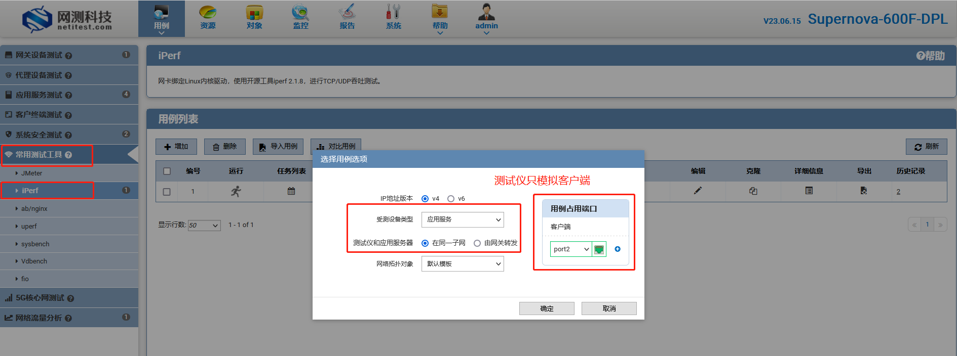 (1),创建iperf吞吐用例,选择网关模式。