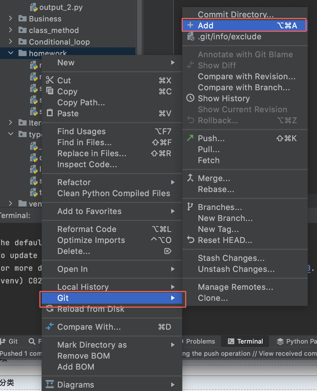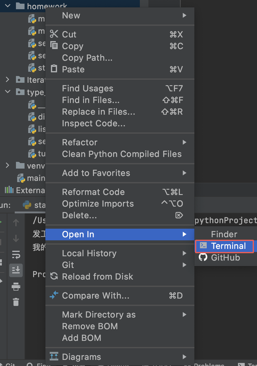 9、把当前项目变成 git 项目:,右键->open in ->terminal 下执行 git init