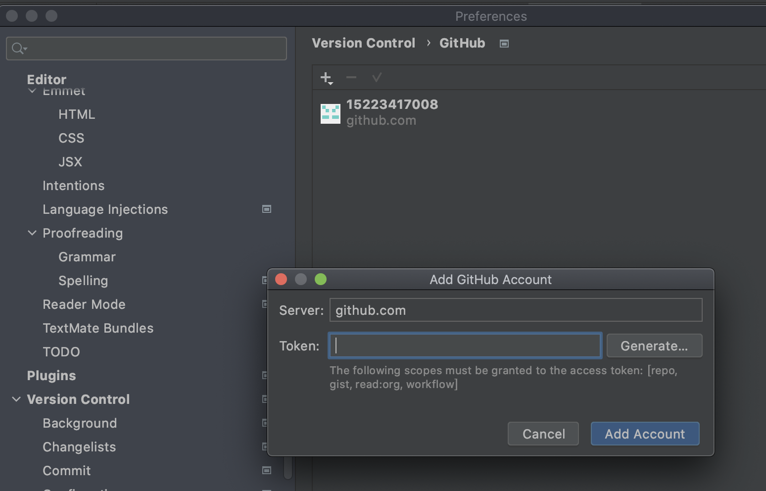 12、token在github里的:头像-setting-Developer settings-Personal access tokens-生成新的token,然后复制token在pycharm里的github里的token
