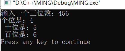 printf("个位是:%d\n 十位是:%d\n 百位是:%d\n",a/100,a%100/10,a%10);
