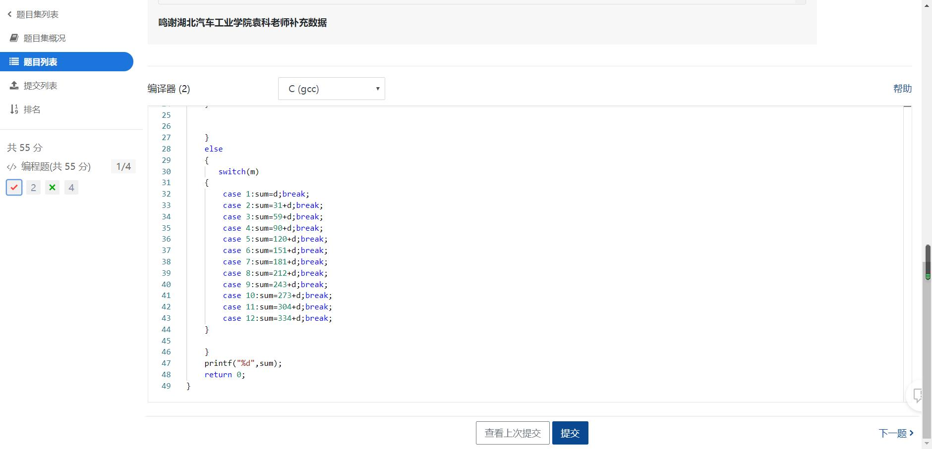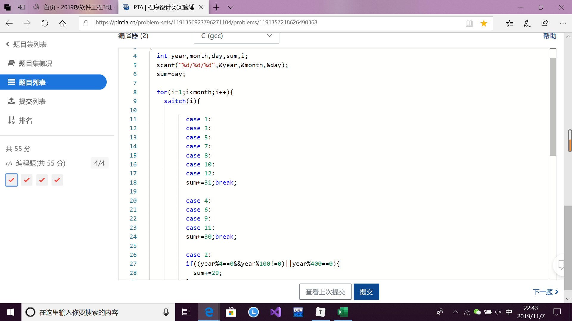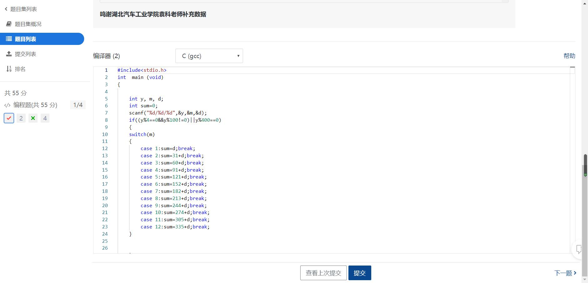 本题要求编写程序计算某年某月某日是该年中的第几天