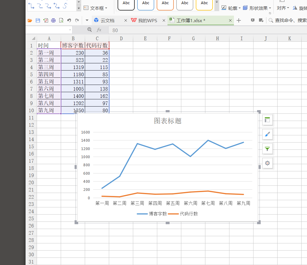 3.2 累积代码行和博客字数