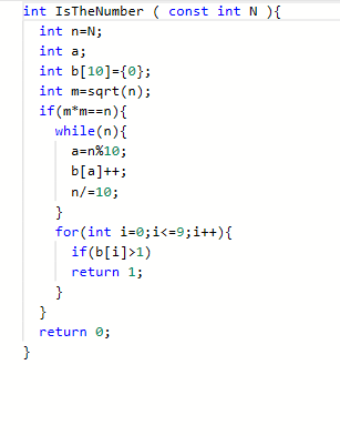 本题要求实现一个函数,判断任一给定整数N是否满足条件:它是完全平方数,又至少有两位数字相同,如144、676等。