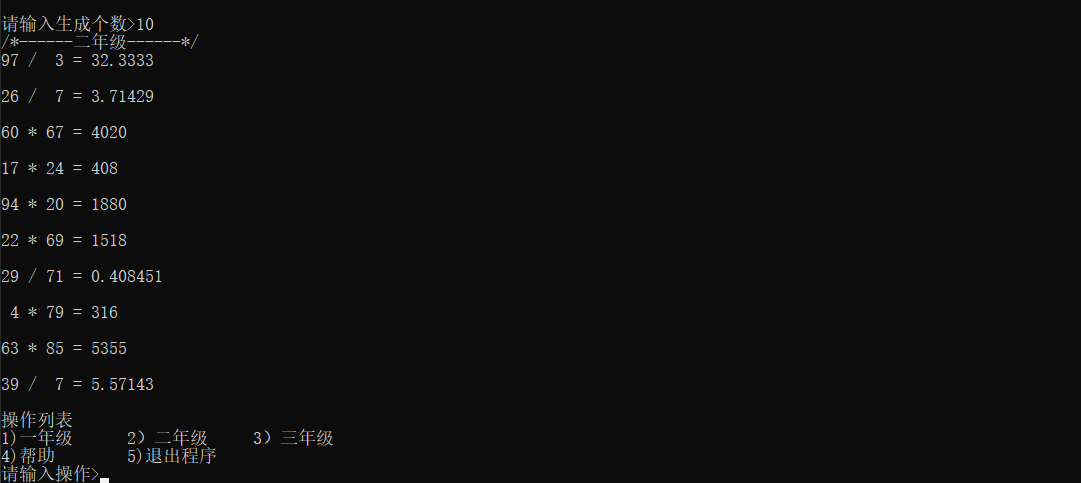 | 这个作业的目标 | 使用上次作业的菜单框架,并在其基础上增加各年级题目的答案函数 |